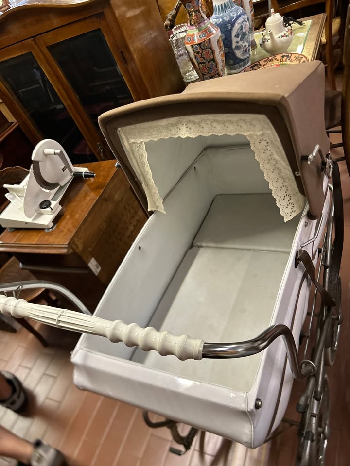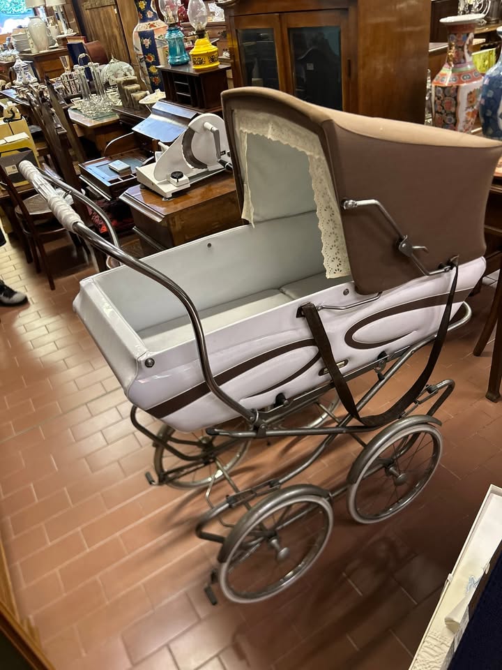 Carrozzina inglese per neonati degli anni 50, in ottimo stato, con interni integri.